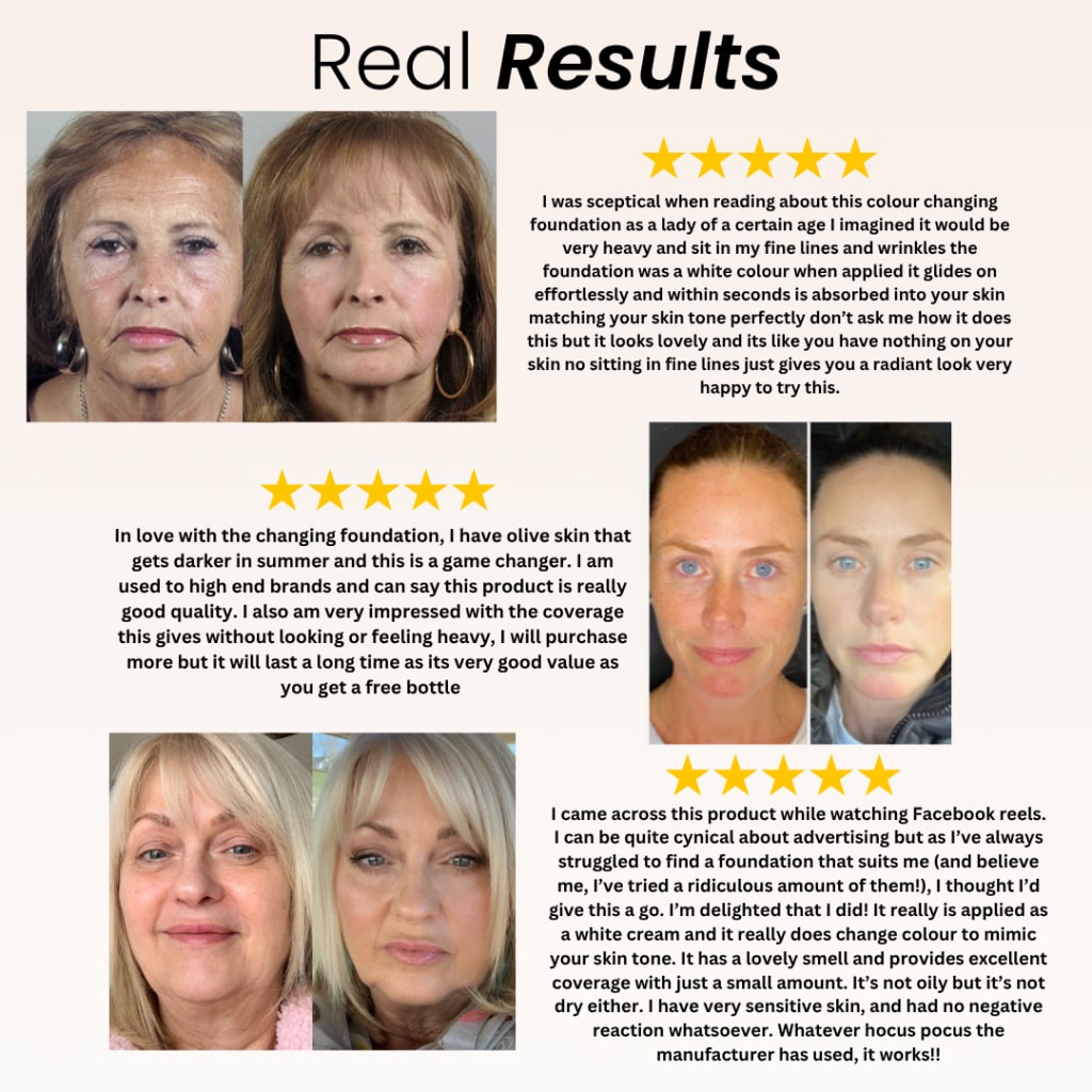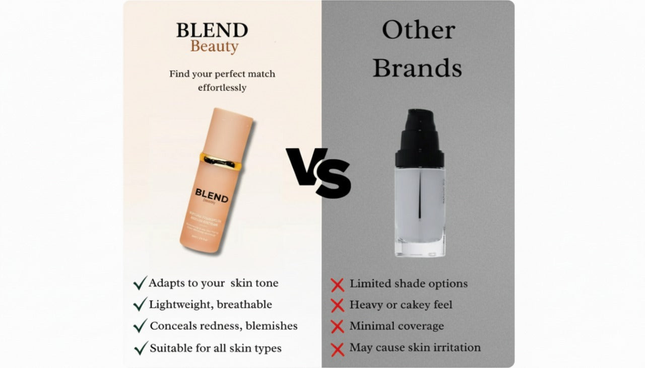 Discover Blend Beauty's amazing ability to enhance diverse skin tones in real life. Explore before-and-after images showcasing flawless coverage, a natural matte finish, and long-lasting hydration for all skin types.